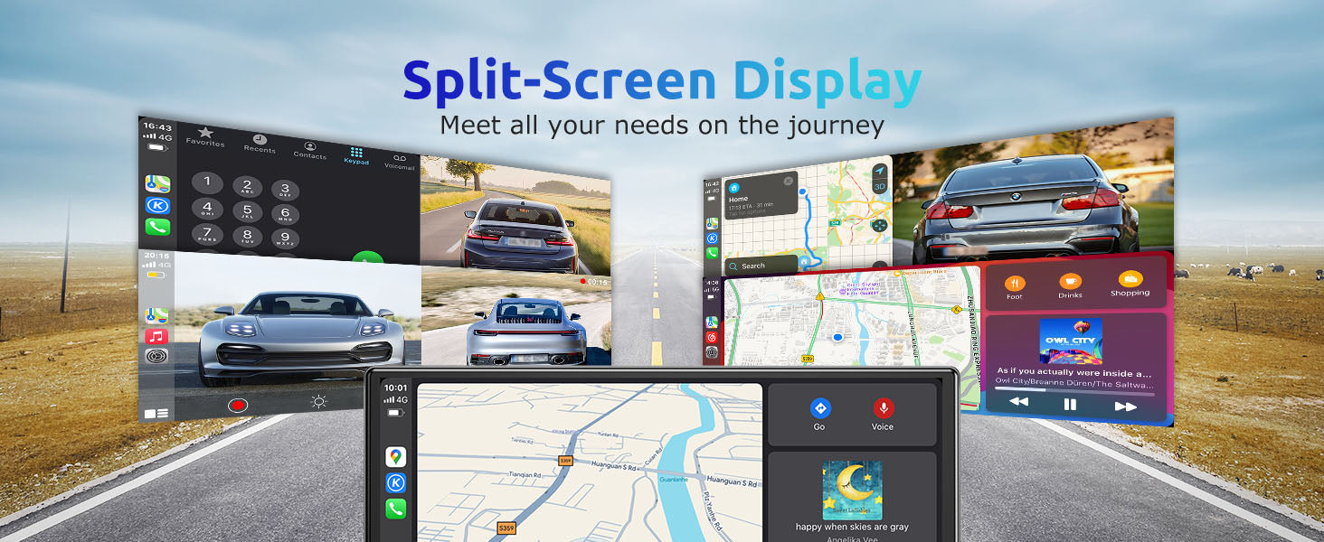 ESSGOO 1026SCP Carplay provides a variety of screen display modes, including full screen and split screen display,