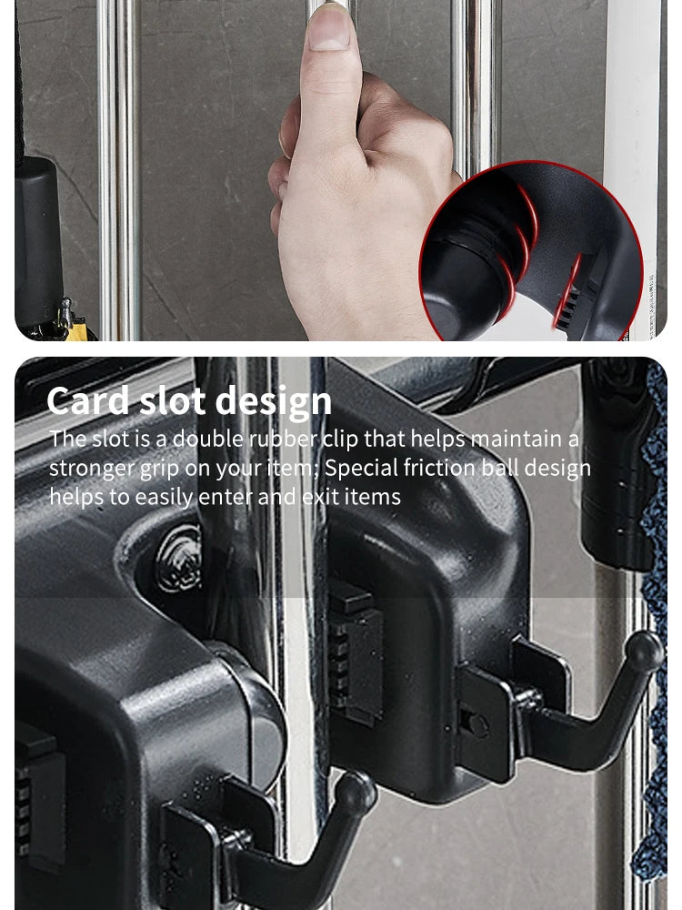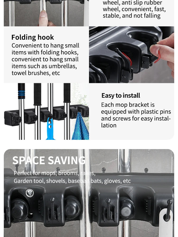 • Multi-functional design :This wall-mounted mop holder can hold brooms, mops, and other cleaning tools, making it a versatile addition to any home.